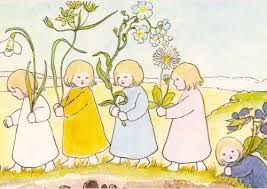 Ansichtkaart wortelkindertjes lente door Sybille von Olfers.