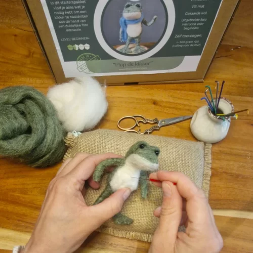 Met deze starterkit maak je een lieve, kleine kikker en ontdek je stap voor stap hoe leuk en ontspannend naaldvilten kan zijn. De set is bedoeld voor beginners, dus je hoeft echt geen ervaring te hebben om hiermee aan de slag te gaan. Gewoon beginnen, prikken, vormpjes maken… en voor je het weet staat er een kikker op tafel waar je trots op bent.