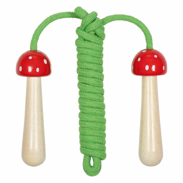 Breng buitenspelen tot leven met het Goki springtouw met houten paddenstoel‑handvatten. Dit stevige springtouw is ideaal voor kinderen die graag actief bezig zijn. De vrolijke paddenstoel‑handvatten zijn gemaakt van glad, duurzaam hout en liggen prettig in kleine handjes. Perfect om de motoriek, ritme en coördinatie te oefenen tijdens het springen. Een klassiek stuk buitenspeelgoed dat fantasie en beweging combineert.