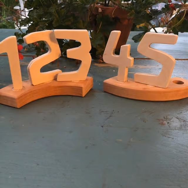 Houten cijfers per stuk. Geschikt voor al onze verjaardagsringen en tafeldecoratie van Grimms.