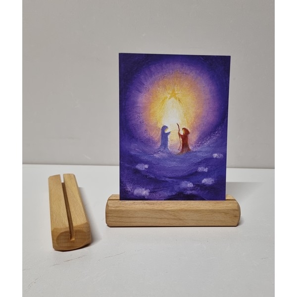 Beukenhouten standaard voor ansichtkaart of foto.