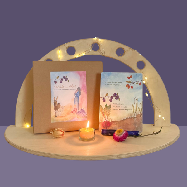 Deze cadeauset is vanuit die inspiratie samengesteld en ondersteunt een liefdevolle adventsbeleving. Gebruik de kaarten als dagelijkse affirmatie, als rustpunt in je huis of als betekenisvolle decoratie. Laat elke week een nieuw lichtje branden en creëer jouw eigen ritueel vol aandacht. Ik wens je een verdiepende advent en een warm en stralend kerstfeest.