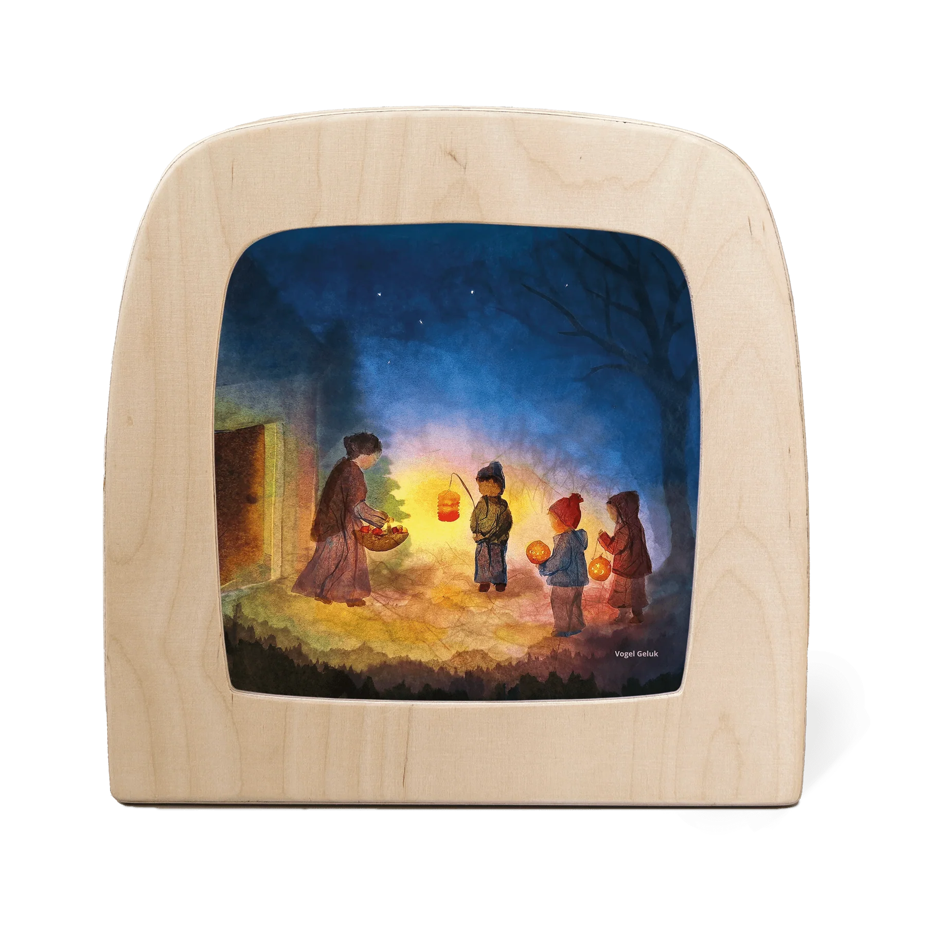 Het is een blikvanger en een mooi rustpunt op de seizoenstafel of op de kinderkamer. De afbeeldingen zijn te verwisselen voor ieder bijzonder moment. Een mooie manier om een traditie te starten met feesten en seizoenen