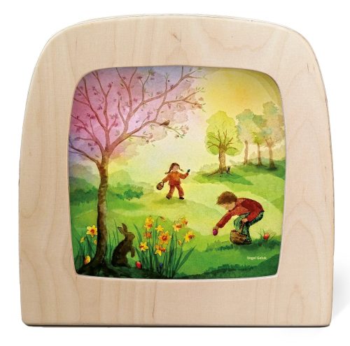 Het is een blikvanger en een mooi rustpunt op de seizoenstafel of op de kinderkamer. De afbeeldingen zijn te verwisselen voor ieder bijzonder moment. Een mooie manier om een traditie te starten met feesten en seizoenen